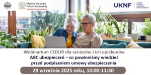 Urząd Komisji Nadzoru Finansowego zaprasza seniorów i ich opiekunów na webinarium „ABC ubezpieczeń – co powinniśmy wiedzieć przed podpisaniem umowy ubezpieczenia” organizowane w ramach projektu Centrum Edukacji dla Uczestników…… Przeczytaj więcej Urząd Komisji Nadzoru Finansowego zaprasza seniorów i ich opiekunów na webinarium „ABC ubezpieczeń – co powinniśmy wiedzieć przed podpisaniem umowy ubezpieczenia”